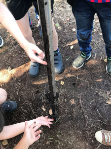 Zurück im NIZ teilten sich die 3 Klassen auf. Eine Klasse drehte einen Bohrstock tief ins Moor und konnte so am herausbeförderten Moor die Unterschiedlichkeit des Moores an der Oberfläche und in ca. 1,5 Meter in der Tiefe anschaulich erleben und erfahren: Unten ist das Moor deutlich feuchter als weiter oben.