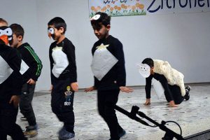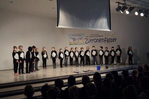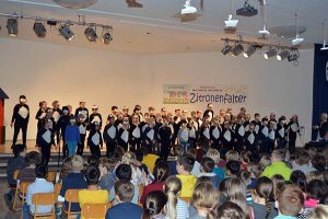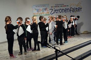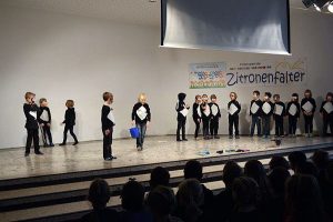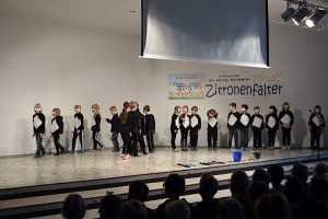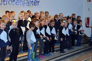 Die Feierstunde wurde unterstützt durch einen gelungenen Auftritt des Zitronenfalterchors unter der Leitung von Frau Büscher und durch einen „Duschtanz“ der Klasse 1a unter der Leitung von Ilka Stöver.