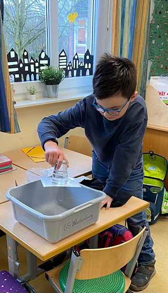 An unseren Forschertagen drehte sich im 4. Jahrgang alles um das Thema Luft. Zum Einstieg sammelten wir gemeinsam, was wir schon über Luft wissen, und staunten beim Versuch mit dem „Gummibärchentaucher“, was Luft alles kann.