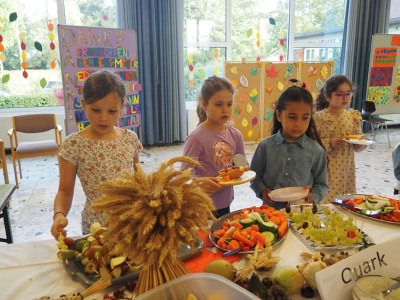 Nachdem alle Schülerinnen und Schüler in der ersten Stunde fleißig vorbereitet haben, konnten sich die Kinder ab 9 Uhr jahrgangsweise an einem großen Büffet in der Aula bedienen und gemeinsam in der Klasse frühstücken.