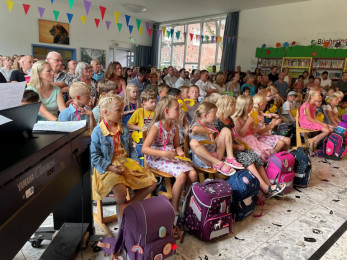 Im Anschluss wurden die Klassen 1a und 1b von ihren Klassenlehrerinnen Frau Jakob und Frau Boeck und den Pädagogischen Mitarbeiterinnen Frau Bierbaum und Frau Hollje in ihre Klassenräume begleitet. Hier fand die erste Schulstunde der Kinder statt. Abschließend wurden die Schulkinder von ihren Eltern in Empfang genommen und noch einige Erinnerungsfotos gemacht.