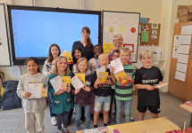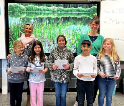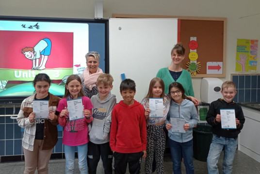 Tilda aus der 3b gewann dieses Jahr das Känguru T-Shirt. Dieser Preis geht an denjenigen, der er schafft, die meisten Aufgaben in Folge richtig zu bearbeiten. Tilda machte den größten „Kängurusprung“.
