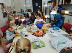 Nun wird in den Klassen noch fleißig geschält, geschnitten und gebacken: Pommes und Kartoffelspalten.
