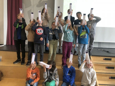 Gemeinsam wurde zu verschiedenen Themen, wie z.B. Symmetrie, Winkeln, Lichtbrechung mit Spiegeln, ausprobiert und entdeckt. Alle gemeinsam machten dazu spannende Versuche und bauten am Ende des Tages noch gemeinsam ein Periskop.