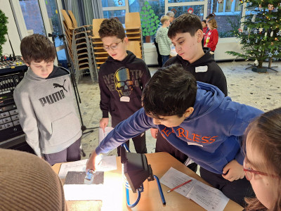 So wurde mit einer Photovoltaikanlage ein Propeller angetrieben – dies ging natürlich am besten, wenn das Licht aus Richtung Süden kam. Mit Wind wurden kleinen Windräder angetrieben. Und durch Wasserkraft wurde eine kleine Ente nach oben befördert. Außerdem wurde anschaulich gezeigt, wie die Warmwasseraufbereitung auf dem Dach funktioniert. Diese Stationen waren sehr motivierend und die Kinder waren mit Freude und Einsatz dabei.